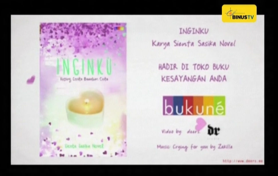 Talkshow novel INGINKU (Sienta Sasika Novel @ssnovel) dan @bukune di BINUS TV Jakarta